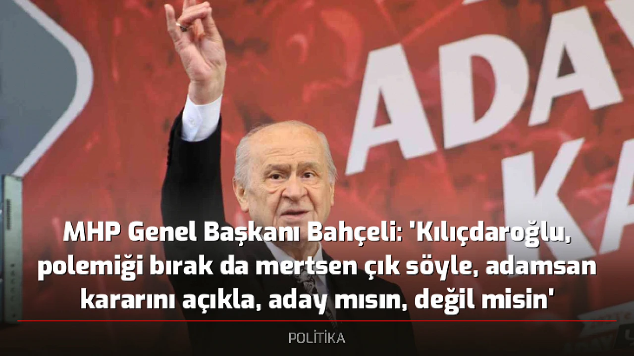 - MHP Genel Başkanı Bahçeli: 'Kılıçdaroğlu, polemiği bırak da mertsen çık söyle, adamsan kararını açıkla, aday mısın, değil misin'