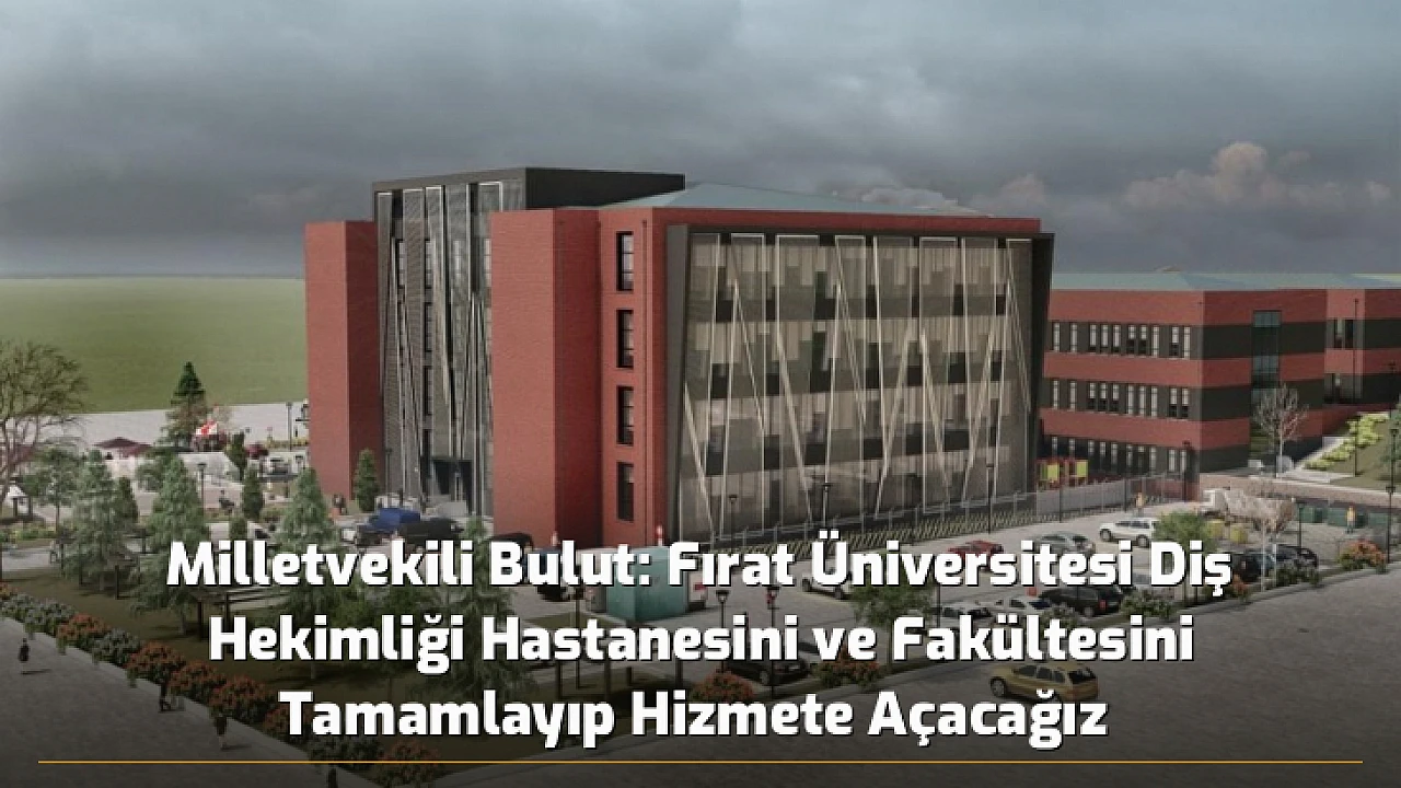 Milletvekili Bulut açıklamasının devamında, “Fırat Üniversitesi Diş Hekimliği Fakültesi ve Hastanesi inşaatının temeli 13 Ağustos 2021 tarihinde atıldı. Diş Hekimliği Fakültesi ve Hastanesi 14.500 metre kare kapalı, 2.500 metre kare otopark ve peyzaj imalatları olmak üzere yaklaşık 17.000 metre kare inşaat alanından oluşmakta. Bina fakülte ve hastane olarak 2 ana blok üzerine inşa edilecektir. Fakülte binası içerisinde; 6 adet 120 kişilik anfi, 5 adet öğrenci laboratuvarı, 1 adet fantom laboratuvarı, 1 adet Preklinik, 1 adet 150 kişilik konferans salonu, Dekanlık ve yönetim birimleri, idari ve akademik personel ofisleri, kafeterya ve dinlenme alanları yer alacak. Toplamda 165 üniteden oluşacak hastane kısmında ise, Ordotonti, Periontoloji, Endodonti, Restoratif, Çocuk Diş, Ağız Diş ve Çene Cerrahisi, Ağız-Çene Radyoloji ve Temel Tıp Bilimleri anabilim dallarını kapsayan klinikler, Preaprikal birimi, Engelli Birey kliniği, Tutuklu ve Hükümlü kliğini, Ameliyathaneler, Yatan hasta odaları, Dezenfektasyon ve Yıkama birimleri, Alçı döküm odası ve laboratuvarlar, Hasta kabul ve danışma, Bekleme salonları, Çocuk Oyun alanları, Bebek bakım odası ve teknik birim ofisleri yer alacak.” dedi.