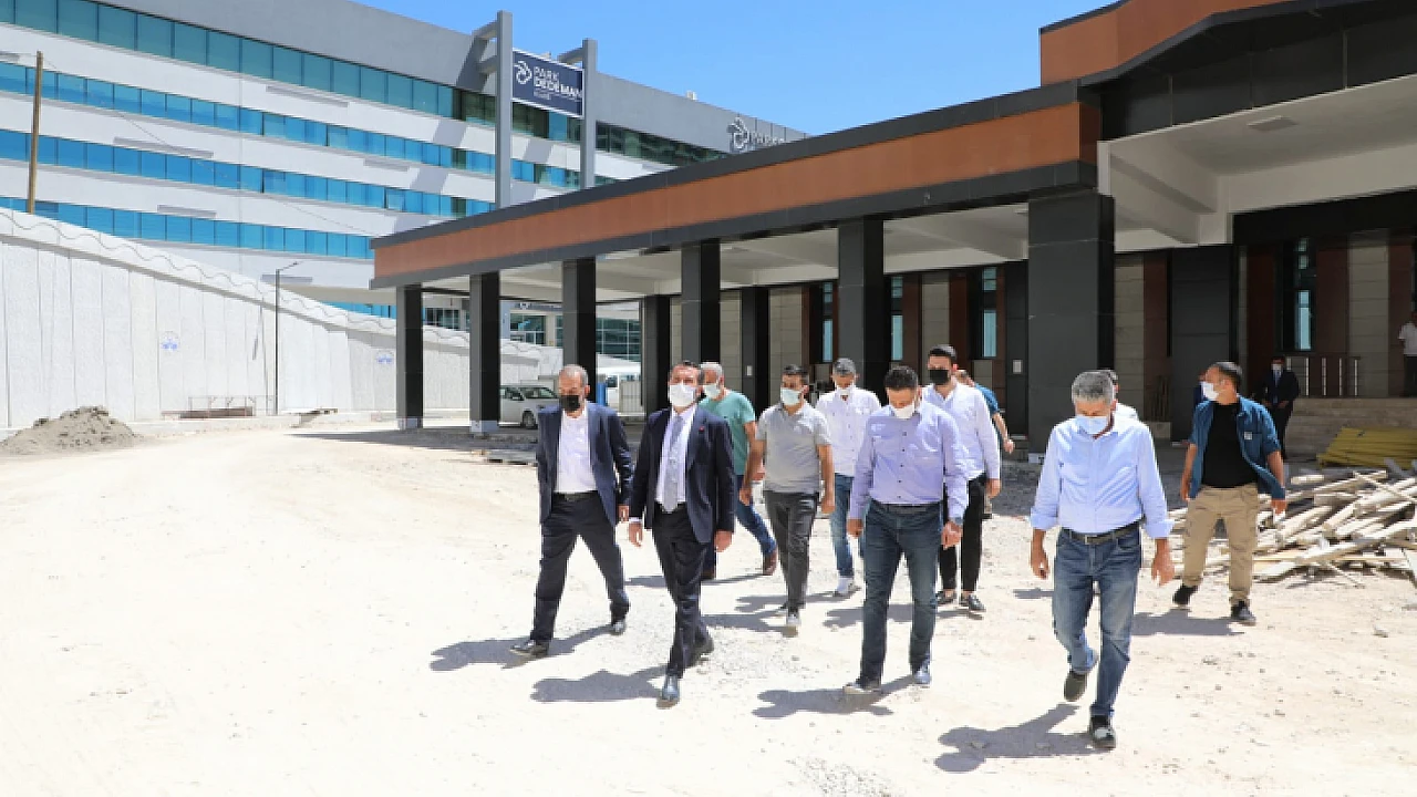 Başkan Şerifoğulları, kısa süre içerisinde hizmete sunulacak Mini Terminal Binası inşaat alanında incelemelerde bulunarak çalışmalarda gelinen son aşamaya ilişkin yetkililerden bilgiler aldı.