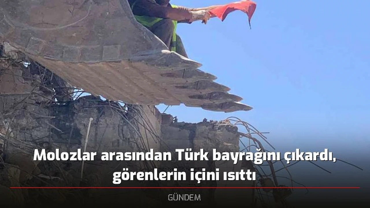 Molozlar arasından Türk bayrağını çıkardı, görenlerin içini ısıttı