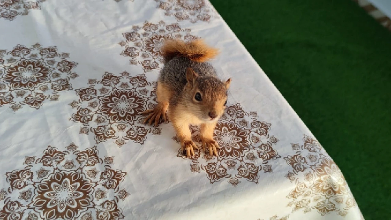 Elazığ'da Cuma Gürevin isimli vatandaş, 3 hafta önce köy yolunda kedilere yem olmak üzere olan yavru bir sincap bularak yanına alıp evinde beslemeye başladı. Cuma Gürevin, sevimli hayvanla kurduğu dostluk renkli görüntüler oluşturuyor.