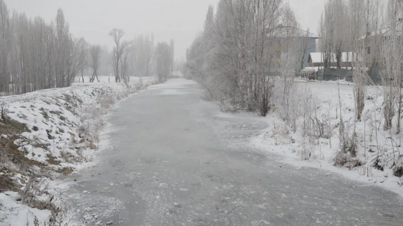 Muş Ovası’ndan geçen Karasu Nehri’nin bazı bölümleri, soğuk hava nedeniyle buz tuttu. Nehrin yakınındaki ağaçlarla refüjlere dikilen ağaçların dalları da soğuk hava nedeniyle buz tuttu.