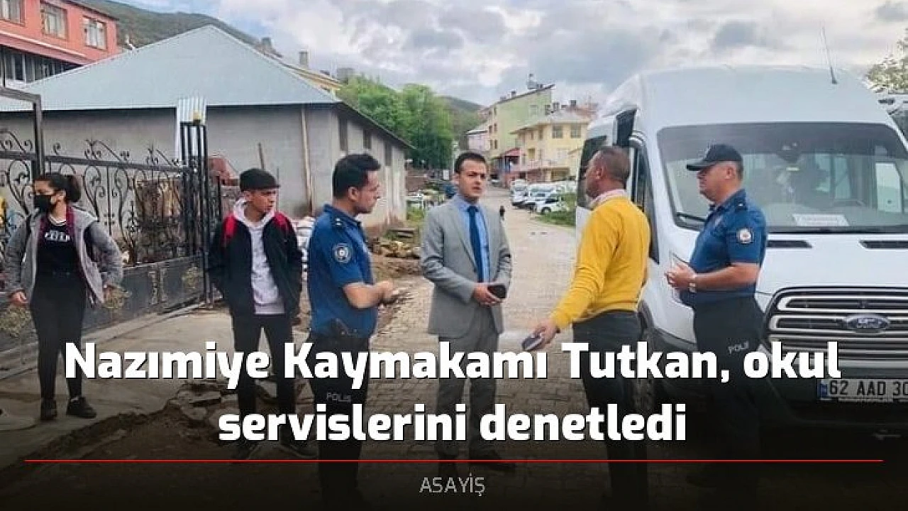 Nazımiye Kaymakamı Uğur Tutkan, haftanın ilk gününde öğrencilerin okul servis araçlarını denetledi. Servis araç sürücülerini okullara geliş ve gidişlerinin güvenli, huzurlu ve sağlıklı bir şekilde sağlanması için kontrollerde bulunarak şoförleri kurallara uymaları hususunda uyardı. Servisten inen öğrencilerle okula kadar yürüyen Kaymakam Tutkan, öğrencilerle bir süre sohbet ettikten sonra başarılar diledi.