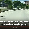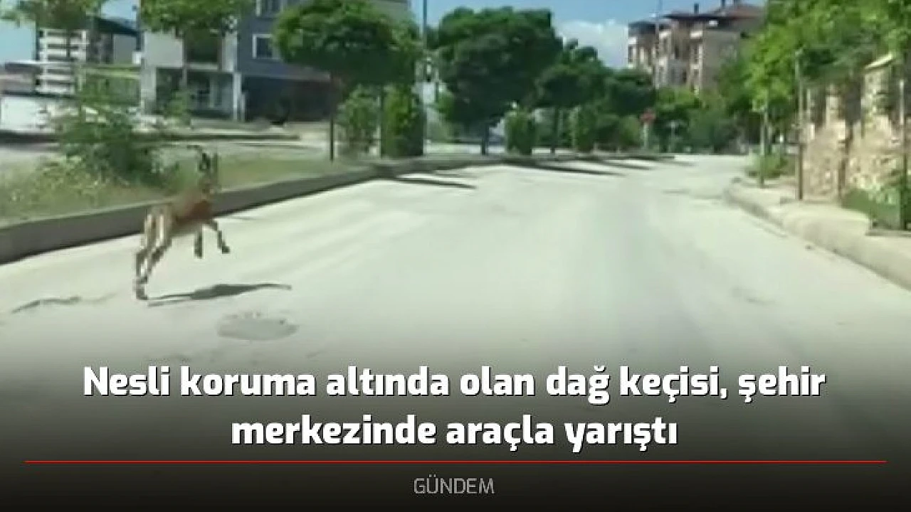 Nesli koruma altında olan dağ keçisi, şehir merkezinde araçla yarıştı