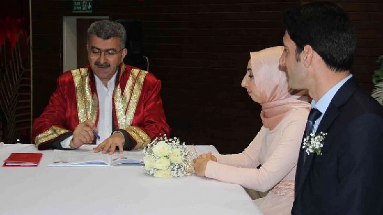 Elazığ'da nikah tarihlerini 22.02.2022 tarihine denk getirerek özel ve akılda kalıcı bir tarih yapmak isteyen çiftler, evlendirme salonlarında yoğunluk oluşturdu. Özel bir tarihte evlenmenin mutluluğunu yaşayan çiftler, akrabalarının ve arkadaşlarının huzurunda 'evet' dedi.