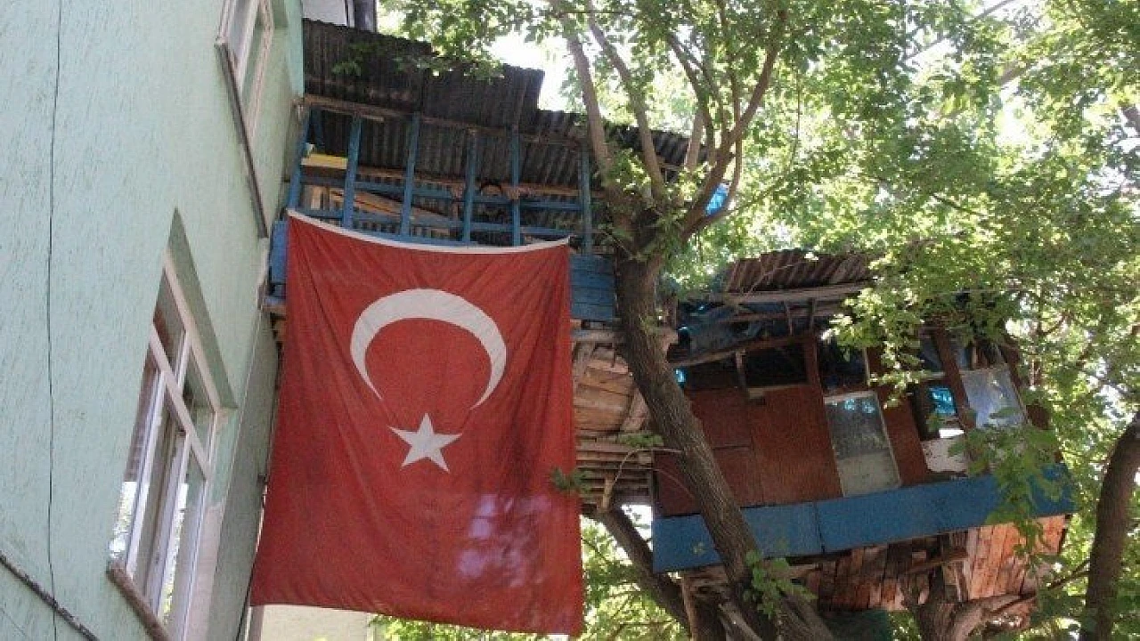 Kültür Mahallesi’nde 3 katlı apartmanın bir dairesinde eşi Cemile ile yaşayan Nusret Gürz, 9 yıl önce yaz aylarında oturmak için evinin bahçesinde bulunan 10 metre yüksekliğindeki dut ağacının üzerine kendi imkanları ile tahtadan ev yaptı.Daha sonra Gürz, 28 basamaklı merdivenle ulaştığı ağaç evi, balkonuyla birleştirdi. Özellikle Covid-19’dan nedeniyle gününün büyük bir bölümünü ağaç evde geçirmeye başlayan Gürz, çoğu geceler 5 metrekarelik ahşap evinde uyuyor.