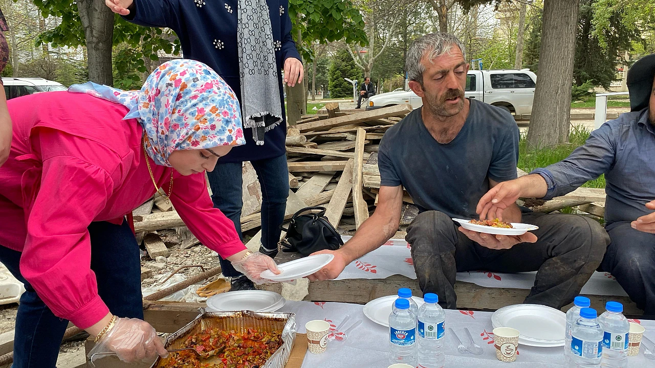 Fırat Üniversitesi İletişim Fakültesi öğrencileri, 1 Mayıs Emek ve Dayanışma Günü'nde inşaat çalışanları ile bir araya gelerek, sohbet edip yemek yedi.