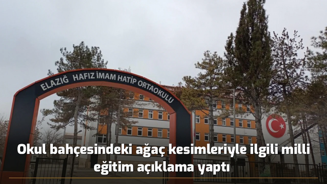 Elazığ'da Hafız İmam Hatip Ortaokulunun bahçesindeki ağaçların kesilmesi olayıyla ilgili Elazığ İl Milli Eğitim Müdürlüğü açıklama yaptı.