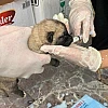 Elazığ'ın Ağın ilçesinde bir kasa içerisinde ölüme terk edildiği yerde belediye personeli tarafından bulunarak koruma altına alınan 10 yavru köpek, şırınga ile süt verilerek beslenmeye başlandı.