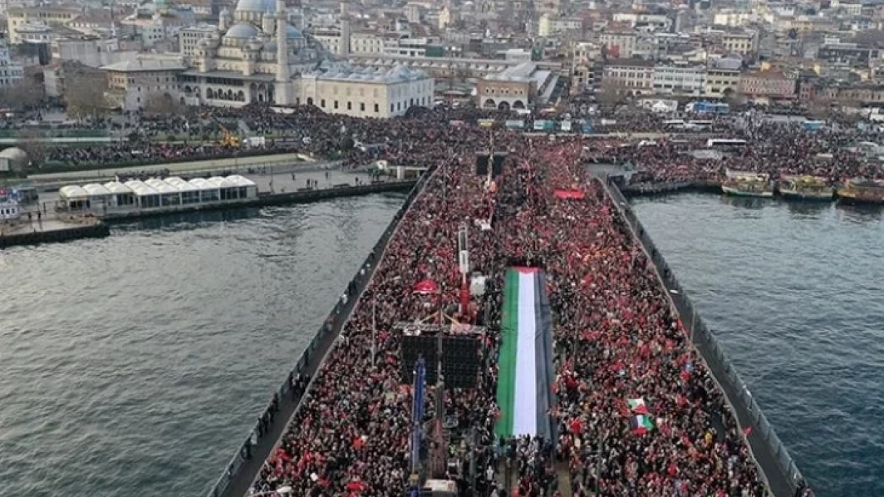 Yeni yılın ilk gününde İstanbul'dan Filistin mesajı verildi. On binlerce kişi 'şehitlere rahmet, Filistin'e destek, İsrail'e lanet' dedi.