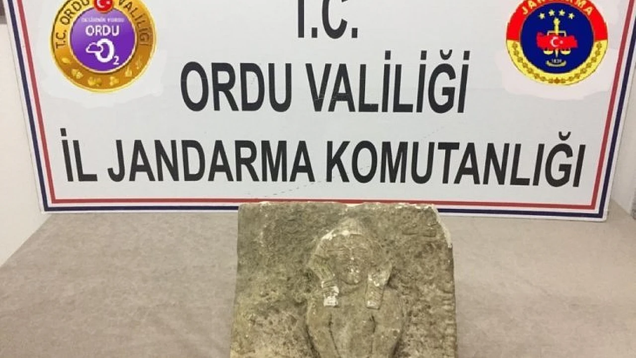 Ordu İl Jandarma Komutanlığı tarafından yapılan istihbari çalışmalar neticesinde Ünye İlçe Jandarma Komutanlığı sorumluluk bölgesinde adli makamlardan alınan arama kararına istinaden 1 şüpheli şahsın evinde arama yapıldı. Aramada 1 adet taş üzerine kabartmalı insan figürü bulunan tarihi eser ele geçirildi. Olayla ilgili yakalanan 1 şüpheli şahıs sevk edildiği adli makamlarca tutuksuz yargılanmak üzere serbest bırakıldı.