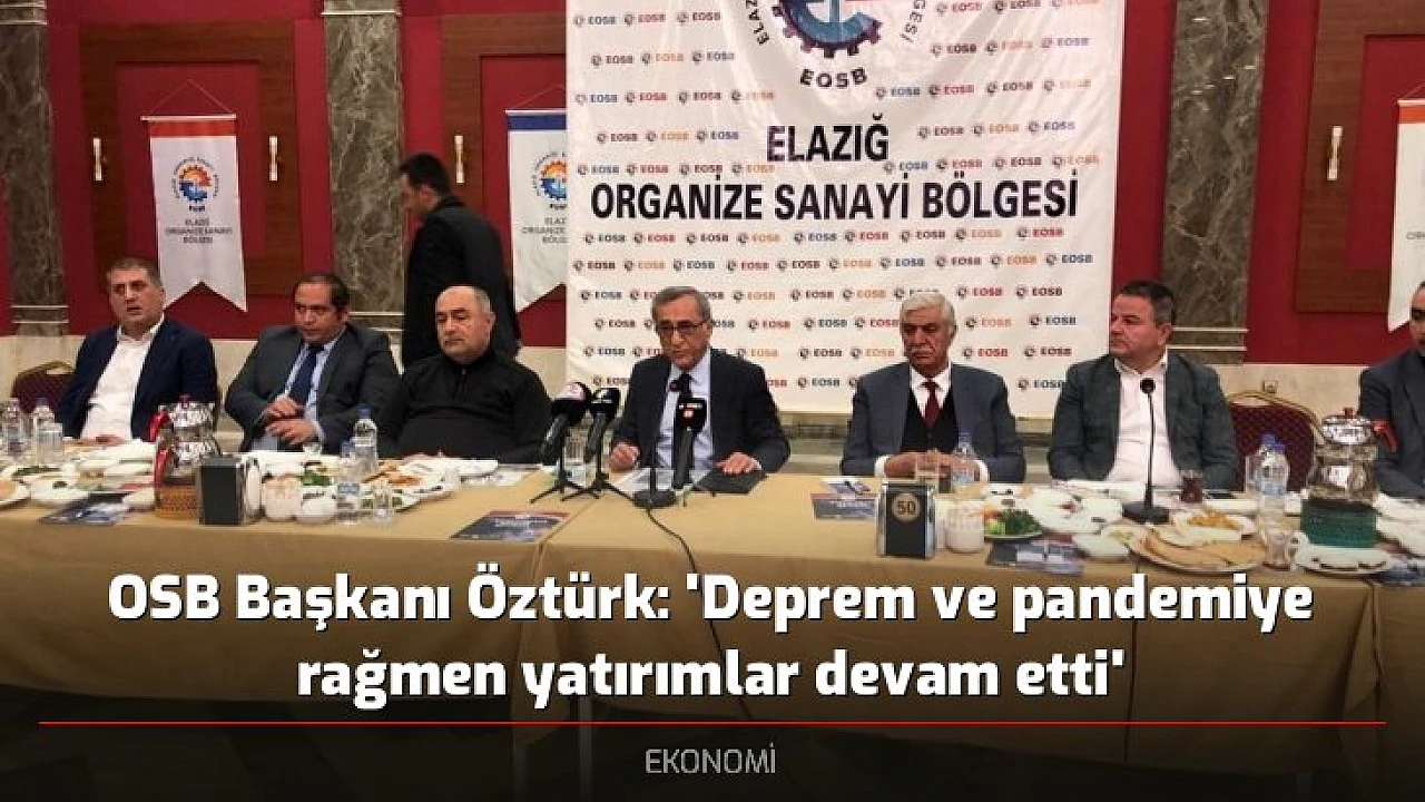 Elazığ'da yaşanan deprem ve pandemiye rağmen yatırımların ve üretimlerin devam ettiğini, işletmelerin büyümeye çalıştığını belirten Elazığ Organize Sanayi Bölgesi (Elazığ OSB) Yönetim Kurulu Başkanı Suat Öztürk, Krize rağmen hem devam eden yatırımlar, hem de yeni açılacak 7 bin 500 kişi önümüzdeki yılın sonuna kadar istihdam edilecek dedi.