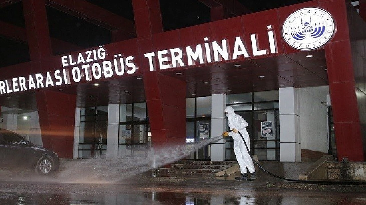Elazığ Belediyesi Temizlik İşleri Müdürlüğü ekipleri, Korona virüs (COVİD-19) salgınıyla mücadele kapsamında Şehirler Arası Otobüs Terminali'nde hummalı bir temizlik çalışması gerçekleştirdi.