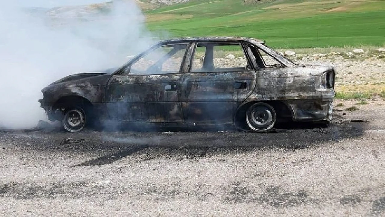Sivas’ın Gürün ilçesinde seyir halindeyken alev alan otomobil kullanılamaz hale geldi.
