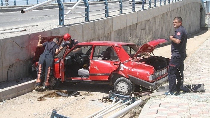 Elazığ'da sürücüsünün direksiyon hakimiyetini kaybettiği otomobil üst geçitten aşağı uçtu, kazada sürücü yaralandı.