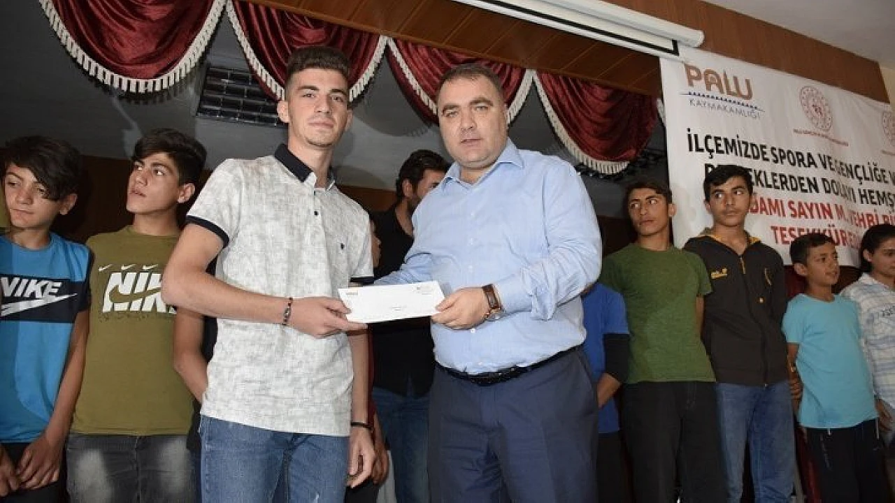 Halk Eğitim Konferans Salonunda düzenlenen törene ilçe Kaymakamı Mustafa Demir, Gençlik ve Spor il Müdürü Suphi Döner, İlçe Milli Eğitim Müdürü Fahri Alakaş, İlçe Gençlik ve Spor Müdürü Faruk Saylan, öğretmenler ile öğrenciler katıldı.Törende konuşan Gülle Atma Yarışması Türkiye Şampiyonasında 9. olan Palu Orta Okulu 7. Sınıf öğrencisi Eyyüp Çiftçioğlu,hedefinin önümüzdeki yıl ilk 3 içerisine girmek olduğunu aktardı.