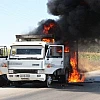 Plastik kasa yüklü kamyonet seyir halindeyken alev alev yandı