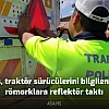 Polis, traktör sürücülerini bilgilendirip römorklara reflektör taktı