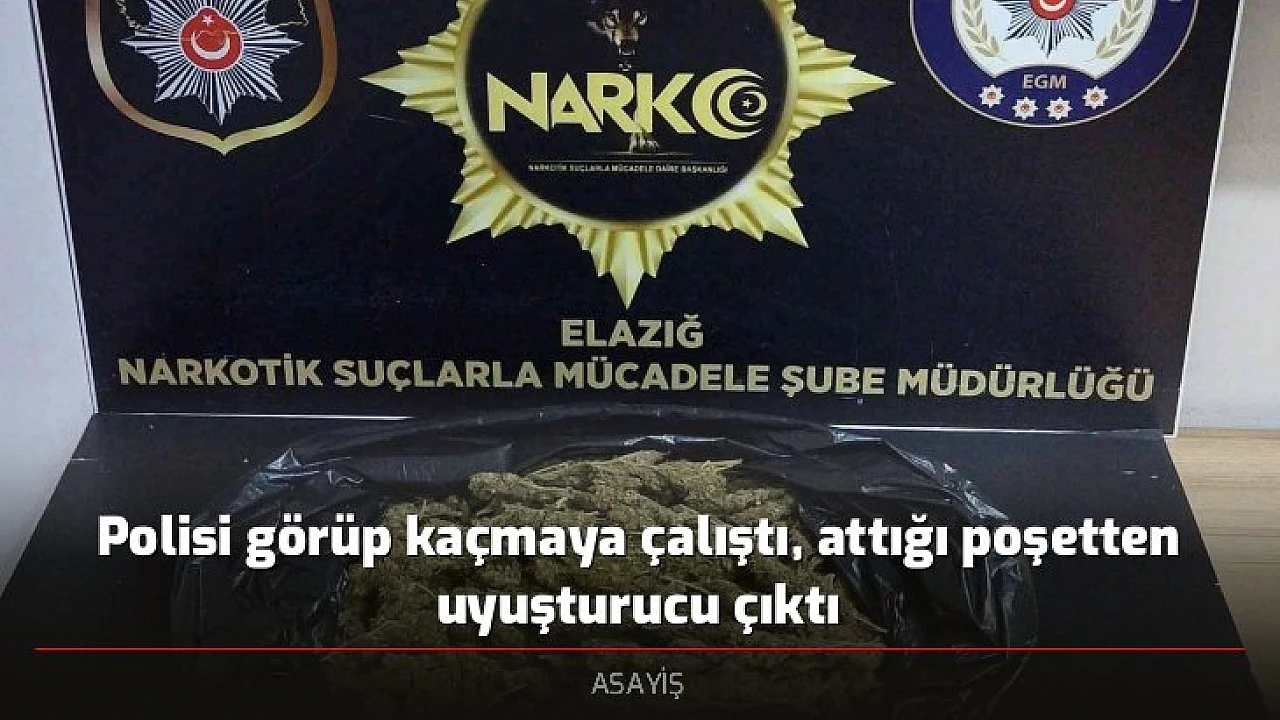 Elazığ'da polisi gören uyuşturucu taciri önce poşeti attı, ardından aracı terk ederek kaçmaya çalıştı ama başarılı olamadı. Polis ekipleri tarafından kısa sürede yakalanarak gözaltına alınan şüpheli bugün adliyeye sevk edildi. Attığı poşetten ise 1 kilo 650 gram uyuşturucu madde çıktı.