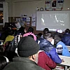 Elazığ polisi, depremden dolayı evleri hasar gören ve aileleriyle bir okulda yaşamaya başlayan çocuklara, sınıfta sinema etkinliği düzenledi.