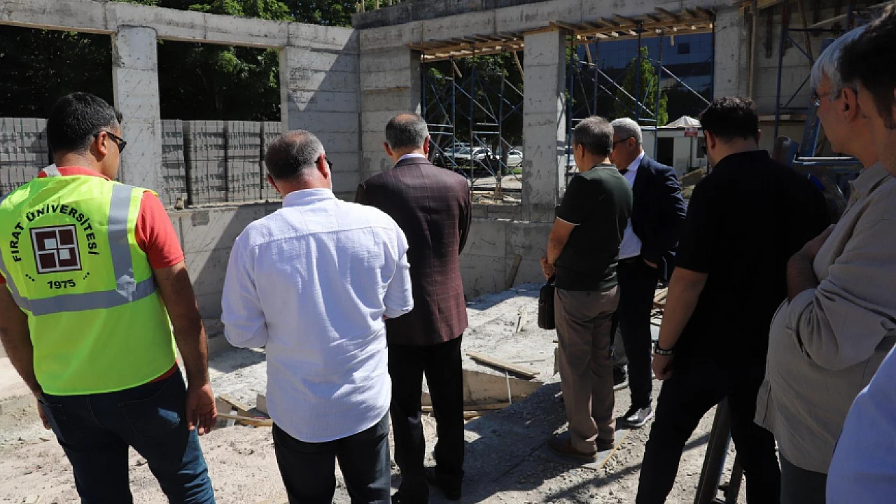Fırat Üniversitesi Rektörü Prof. Dr. Fahrettin Göktaş, Rektör Yardımcıları Prof. Dr. İrfan Kaygusuz ve Prof. Dr. Mehmet Yılmaz ile birlikte inşaat sahasını ziyaret ederek çalışmaları yerinde inceledi.