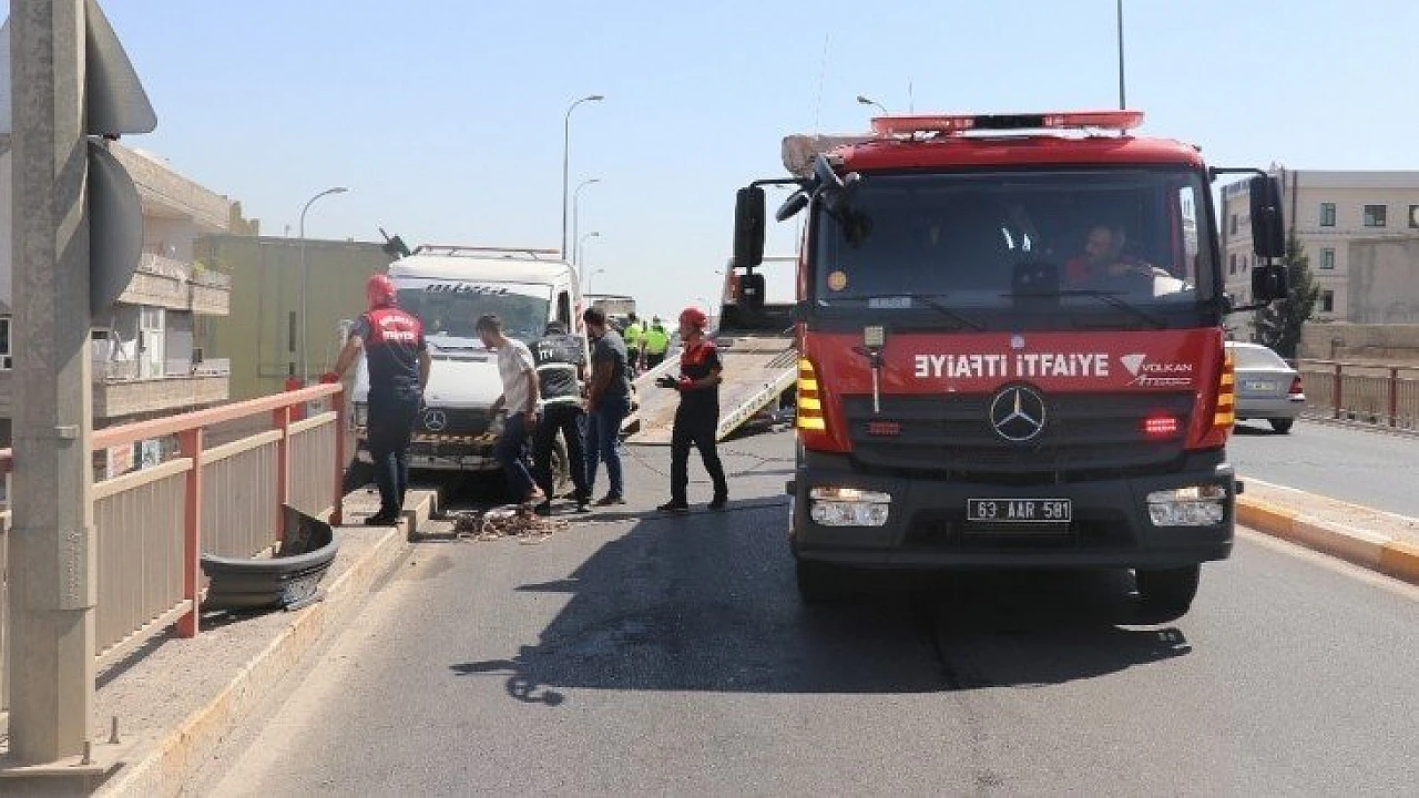 Edinilen bilgiye göre kaza, Kaza Haliliye ilçesindeki Yeşildirek köprülü kavşağının üzerinde meydana geldi. İddiaya göre sürücüleri belirlenemeyen aynı yönde seyreden kamyonet ile otomobil çarpıştı. Kazada, sürücüsünün direksiyon hakimiyetini kaybettiği kamyonet bariyerlere çarparak köprüde asılı kaldı. Korkutan kaza sonrası olay yerine giden polis, bölgede güvenlik önlemi alarak köprü altından geçen yolu trafiğe kapattı. İtfaiye ekiplerinin çekici ile kamyonetti çekmesinin ardından yol tekrar trafiğe açıldı. Kazada bir sürücü yaralandı.