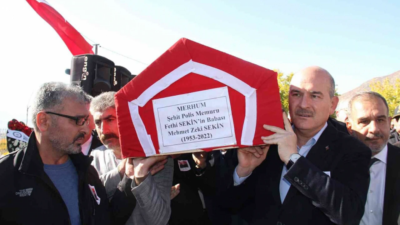 İzmir Adliyesi önünde teröristlerle kahramanca mücadele ederek şehit düşen polis memuru Fethi Sekin'in babası Mehmet Zeki Sekin, son yolculuğuna uğurlandı. Cenaze törenine katılan İçişleri Bakanı Süleyman Soylu, vatandaşlarla birlikte tabutu omuzladı.