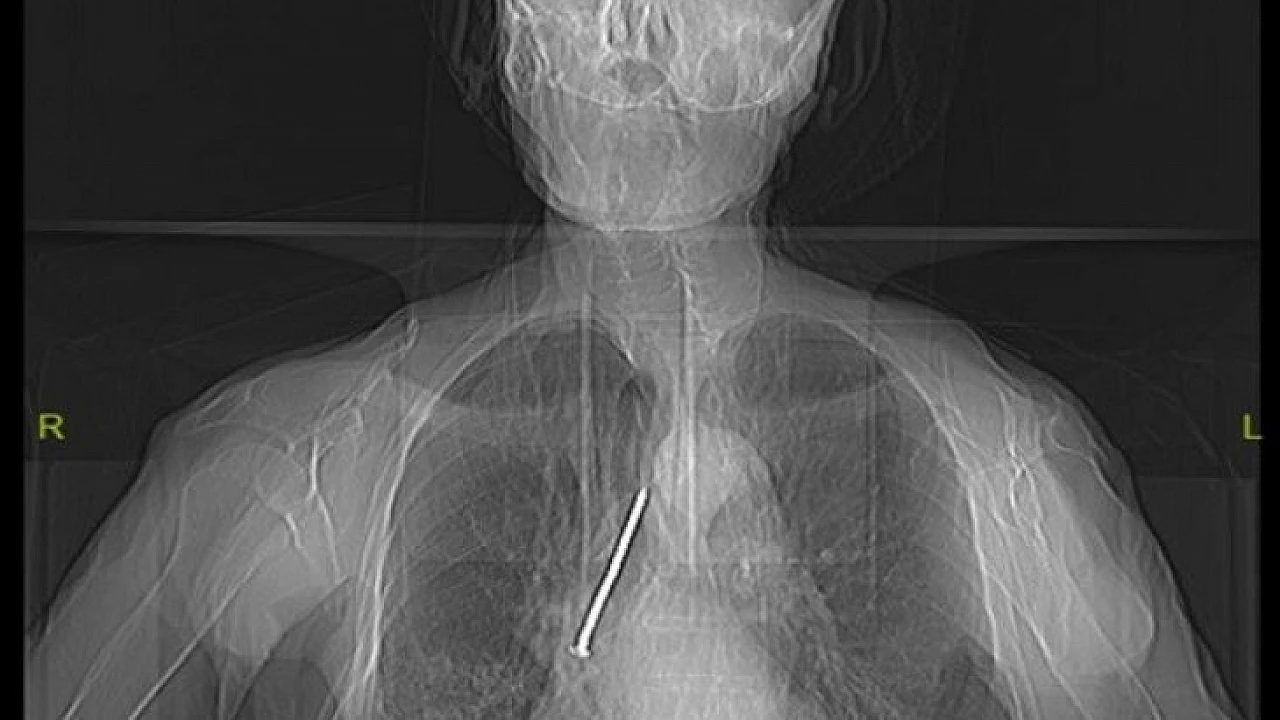 Hızlı bir şekilde müdahale edilmediği takdirde hayatı tehlikeye atabilen bir durumla karşı karşıya kaldıklarını belirten Dr. Kılıç, "Larenks kanseri nedeniyle 24 yıl önce boynundan nefes borusuna açılan açıklık aracılığıyla nefes alıp verebilen hasta, nefes borusundaki bu açıklığı temizlemek amacıyla kullandığı 10 santimlik çiviyi soluk borusuna kaçırmış. Bu nedenle gelişen öksürük ve nefes darlığı şikayeti ile önce başka bir sağlık merkezine başvurmuş, ardından Fethi Sekin Şehir Hastanemiz Göğüs Cerrahisi Kliniğine yönlendirilmiş. Biz de hastanede 91 yaşındaki hastamıza çektiğimiz tomografide soluk borusu içerisinde, sağ akciğer içerisine doğru kaçmış olan çiviyi tespit ettik” dedi.