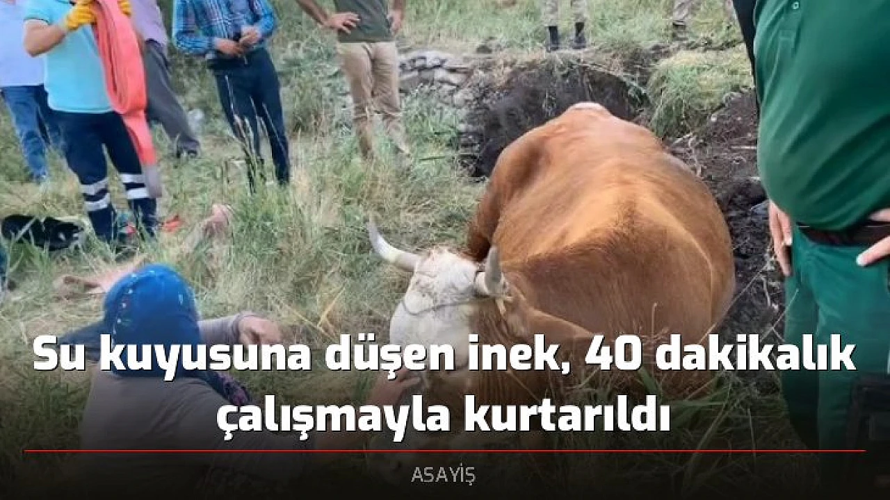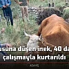 Su kuyusuna düşen inek, 40 dakikalık çalışmayla kurtarıldı