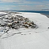 Elazığ'da Keban Baraj Gölü'nün havzasında yer alan Murat Nehri'ne sıfır konumda bulunan Aşağı İçme köyünde suların çekildiği alanların kar yağışı ile beyaza bürünmesiyle eşsiz bir manzara ortaya çıktı.