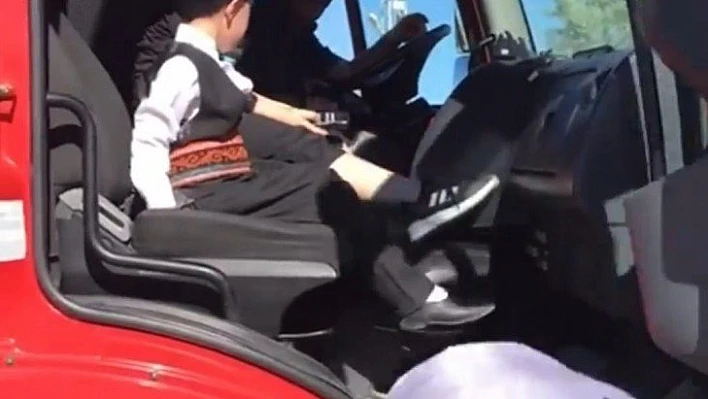 Daha sonra iki kardeş itfaiye aracına bindirilerek tur attı. Yapılan sürprizden dolayı iki kardeşin mutluluğu gözlerinden okundu.