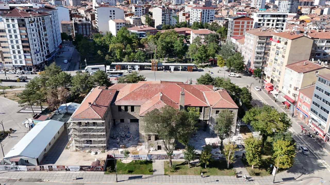 Elazığ Belediyesi tarafından başlatılan Tarihi Öğretmenevi'nde güçlendirme ve restorasyon çalışmaları devam ediyor.