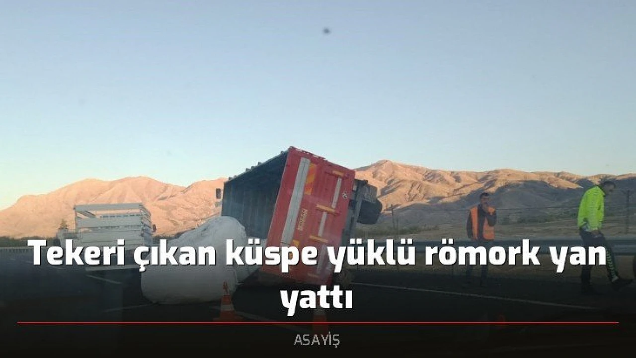 Olay, Elazığ-Bingöl karayolu 23’üncü kilometrede meydana geldi. Edinilen bilgiye göre, plakası ve sürücüsü belirlenemeyen küspe yüklü traktör, seyir halindeyken römorkunun arka sol tekerinin yerinden çıkması üzerine yan yattı. Traktörün römorkunda yüklü olan küspeler ise yol kenarına devrildi.