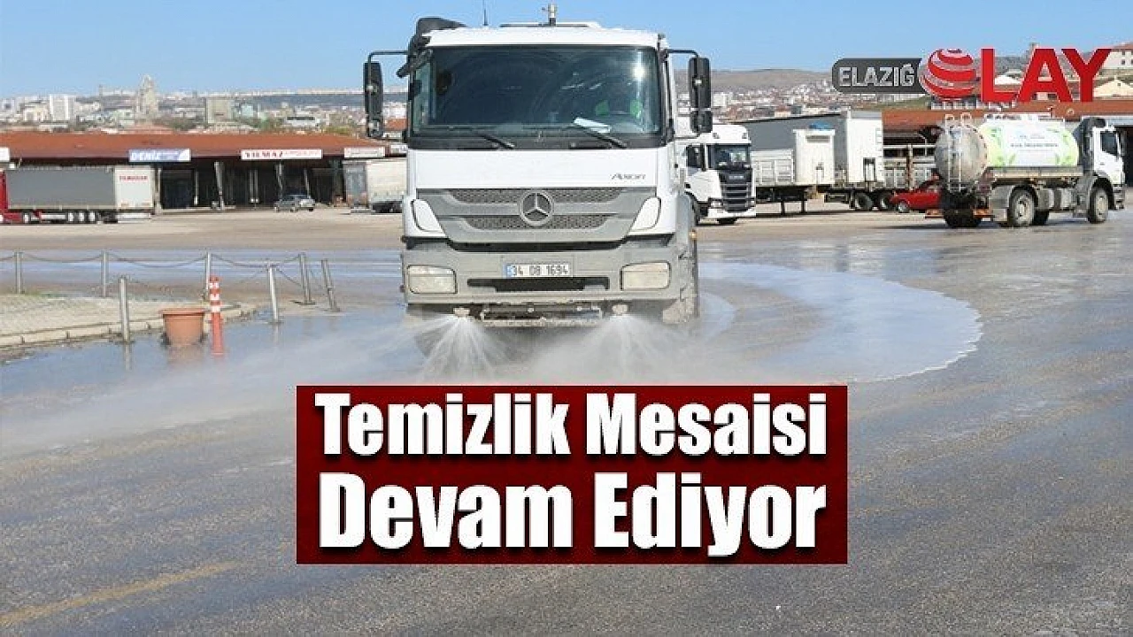 Şehrin dört bir yanında sürdürülen hijyen ve dezenfeksiyon çalışmalarına aralıksız devam eden Elazığ Belediyesi Temizlik İşleri Müdürlüğüne bağlı ekipler, yürüttükleri çalışmalar kapsamında sebze ve meyve akışının sağlandığı Elazığ Sebze Halinde de düzenli olarak temizlik ve dezenfeksiyon çalışmalarını sürdürüyor.