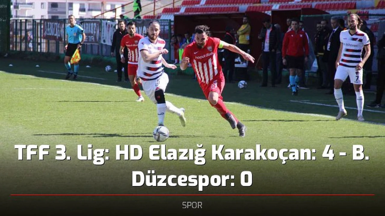TFF 3. Lig 2. Grup 33. hafta maçında HD Elazığ Karakoçan FK, sahasında lider B. Düzcespor'u 4-0 mağlup etti.