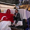 Belediye Başkanı Evren Evrim Özdemir’den gerekli izinleri aldıktan sonra iş makinesini süsleyen Gömleksiz, vatandaşların şaşkın bakışları arasında iş makinesinin yükleme kısmında eşi Özge Gömleksiz’le birlikte ellerindeki dev Türk bayrağı eşliğinde ilçe merkezinden geçerek düğün salonuna ulaşarak düğünlerini gerçekleştirdi.