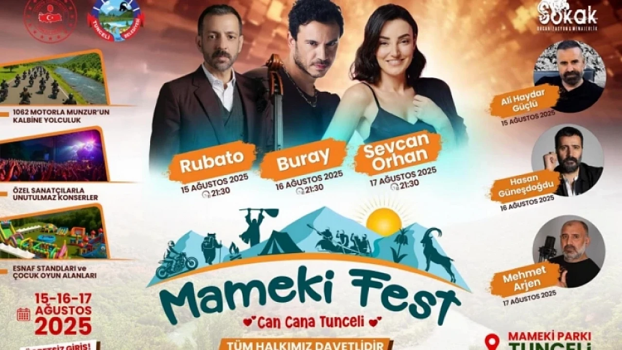 Tunceli, yaz mevsiminin en renkli etkinliklerinden biri olan Mameki Fest ile müzik, doğa ve kültür şölenine hazırlanıyor. Doğanın eşsiz güzellikleri, bölgenin zengin kültürü ve müziğin birleştirici gücünü bir araya getirecek festival, Türkiye'nin dört bir yanından binlerce ziyaretçiyi ağırlayacak.