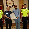 Emniyet Genel Müdürlüğü tarafından yapılan yarışmada Türkiye 8'incisi olan öğretmen Oktay Ataş'a, İl Emniyet Müdürü Doğan Cangül hem belgesini hemde ödülünü verdi.