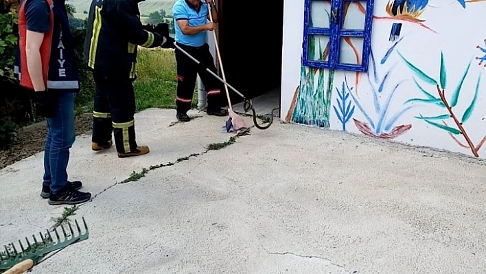 Malkara - Süleymanpaşa yolu üzerindeki bir dinlenme tesisinin tuvaletine 2 metre uzunluğunda yılan girdi. Mekan sahipleri tarafından çağrılan itfaiye ekipleri, zehirsiz olduğu belirlenen yılanı yakalayarak, doğal ortamına saldı. Mekan sahipleri, itfaiye ekiplerine teşekkür etti.