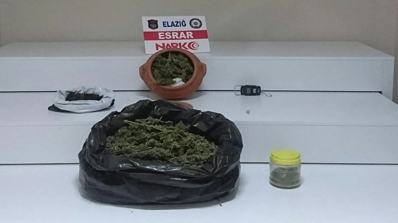 Alınan bilgiye göre, Elazığ İl Emniyet Müdürlüğü Narkotik Suçlarla Mücadele Şube Müdürlüğümüzce, Palu ilçesinde bir barakada uyuşturucu madde ticaretinin yapıldığı tespit edildi. Söz konusu barakaya gerçekleştirilen operasyon sırasında içeride bulunan şahısların yanan soba içerisine poşet attıklarının görülmesi üzerine hemen su dökmek suretiyle müdahale edildi. Soba içerisinde yapılan incelemede bir kısmı yanmış esrar maddesi ele geçirildi. Ayrıca, yapılan aramalar sırasında uyuşturucu madde satışında kullanılan 1 adet hassas terazi, 1 poşet içerisinde ve bahçe kısmında dedektör köpeğin tepki verdiği alanda toprağa gömülmüş 1 adet çömlek içerisinde de esrar maddesi ele geçirildi. Toplamda 2 kg esrar maddesi ile yakalanan R.K. ve M.B. isimli şahıslar gözaltına alındı. Şahıslar hakkında Uyuşturucu Madde Ticareti Yapmak suçundan adli tahkikat başlatıldı.