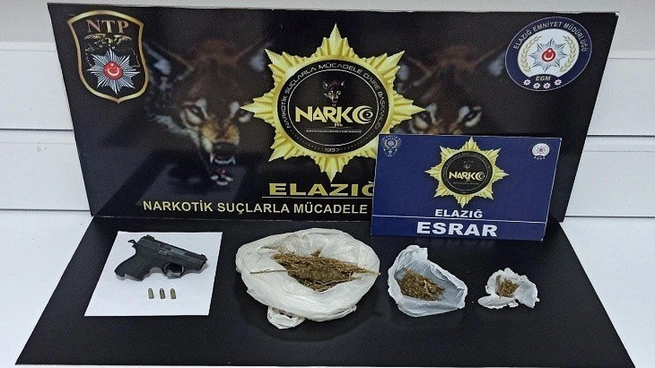 Elazığ'da uyuşturucu ticareti yaptıkları tespit edilen 3 kişi yakalandı. Şahısların ikametlerinde yapılan aramalarda çeşitli miktarlarda uyuşturucu madde ile bir adet ruhsatsız tabanca ele geçirildi.