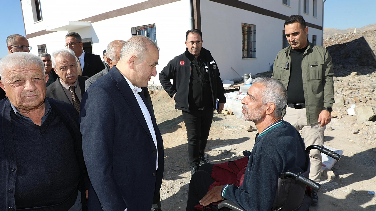 Elazığ Valisi Numan Hatipoğlu yapımı devam eden Karşıyaka Mahallesi Taziye Evi'nde incelemelerde bulundu.