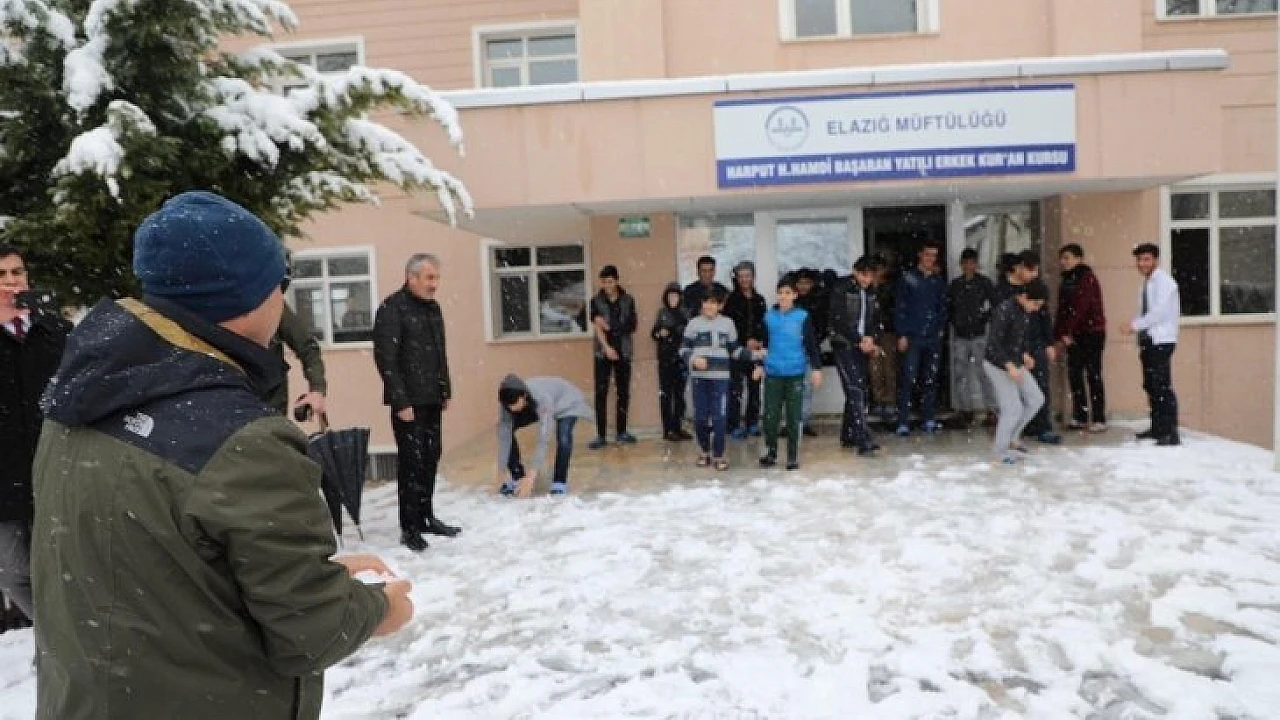 Elazığ’ın yüksek kesimlerinde etkili olan kar yağışı tarihi Harput Mahallesi’ni de beyaza bürüdü. Vali Çetin Oktay Kaldırım’da tarihi mahalleye giderek gezintide bulundu. Bu sırada Hamdi Başaran Yatılı Erkek Kur’an Kursu öğrencileri ile karşılaşan Kaldırım, onlara kartopu atarak oyunu başlattı.Vali ile öğrencilerin kartopu oyunu renkli görüntüler oluşturdu.