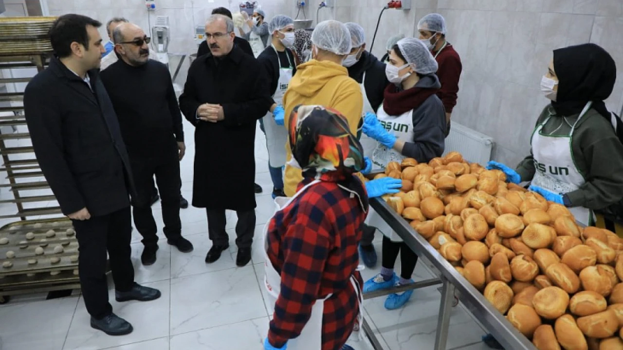 Elazığ’dan deprem bölgelerine yardımlar sürüyor. Bu kapsamda Elazığ Valisi Dr. Ömer Toraman, Kahramanmaraş merkezli yaşanan depremden etkilenen diğer illere gönderilmek üzere günlük 45 Bin ekmeğin üretildiği Şehit Mehmet Öter Mesleki ve Teknik Anadolu Lisesi'ni ziyaret etti.