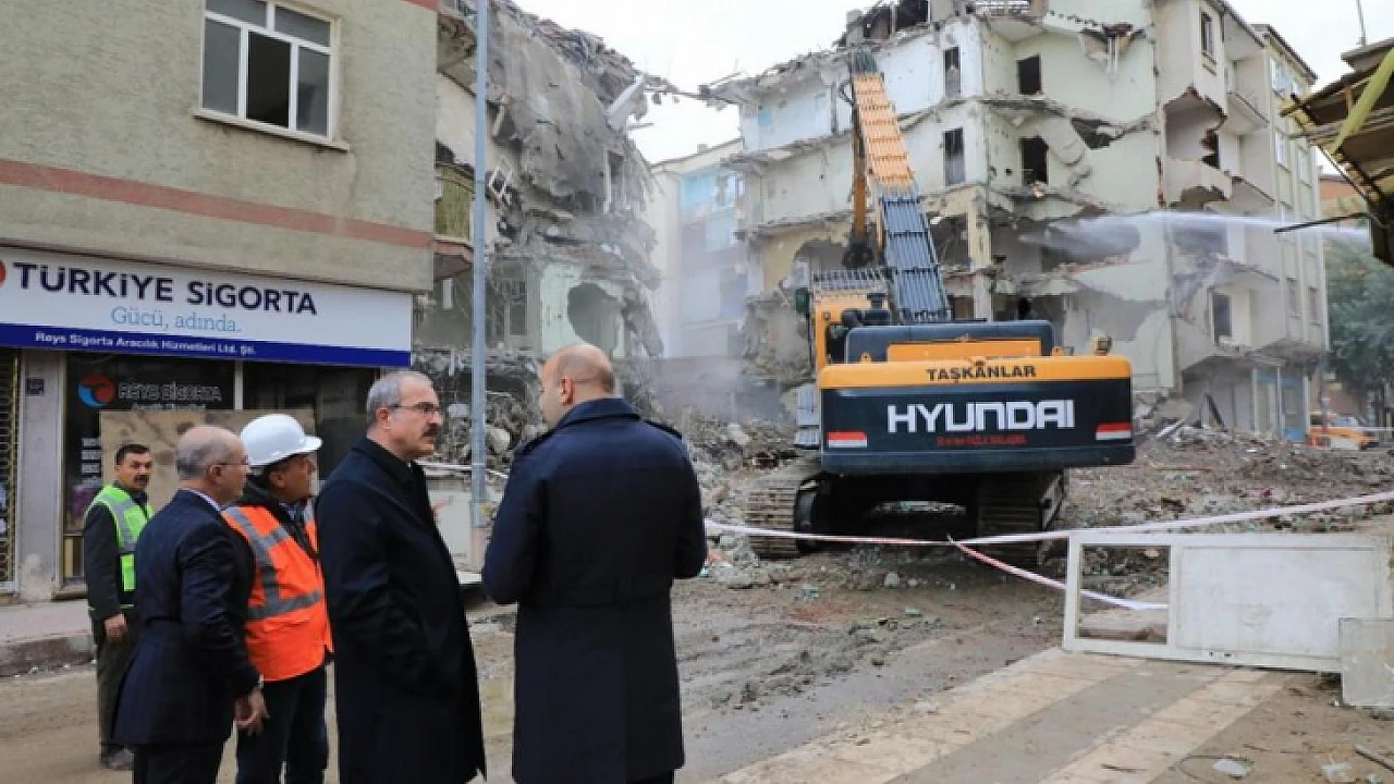 Elazığ Valisi Dr. Ömer Toraman, 6 Şubat depremlerinde Elazığ'da ağır hasar alan binaların yıkım çalışmalarını yerinde inceledi.