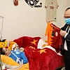 Elazığ’da 20 yıl önce yakalandığı milyonda bir görülen kas gevşekliği (duchenne muscular dystrophy miyopati) hastalığı nedeniyle 3 makineye bağlı yaşayan ancak yaşama azmi ile bir çok kitap yazan Nurçin Arlı’yı Vali Erkaya Yırık evinde ziyaret ederek forma hediye etti.