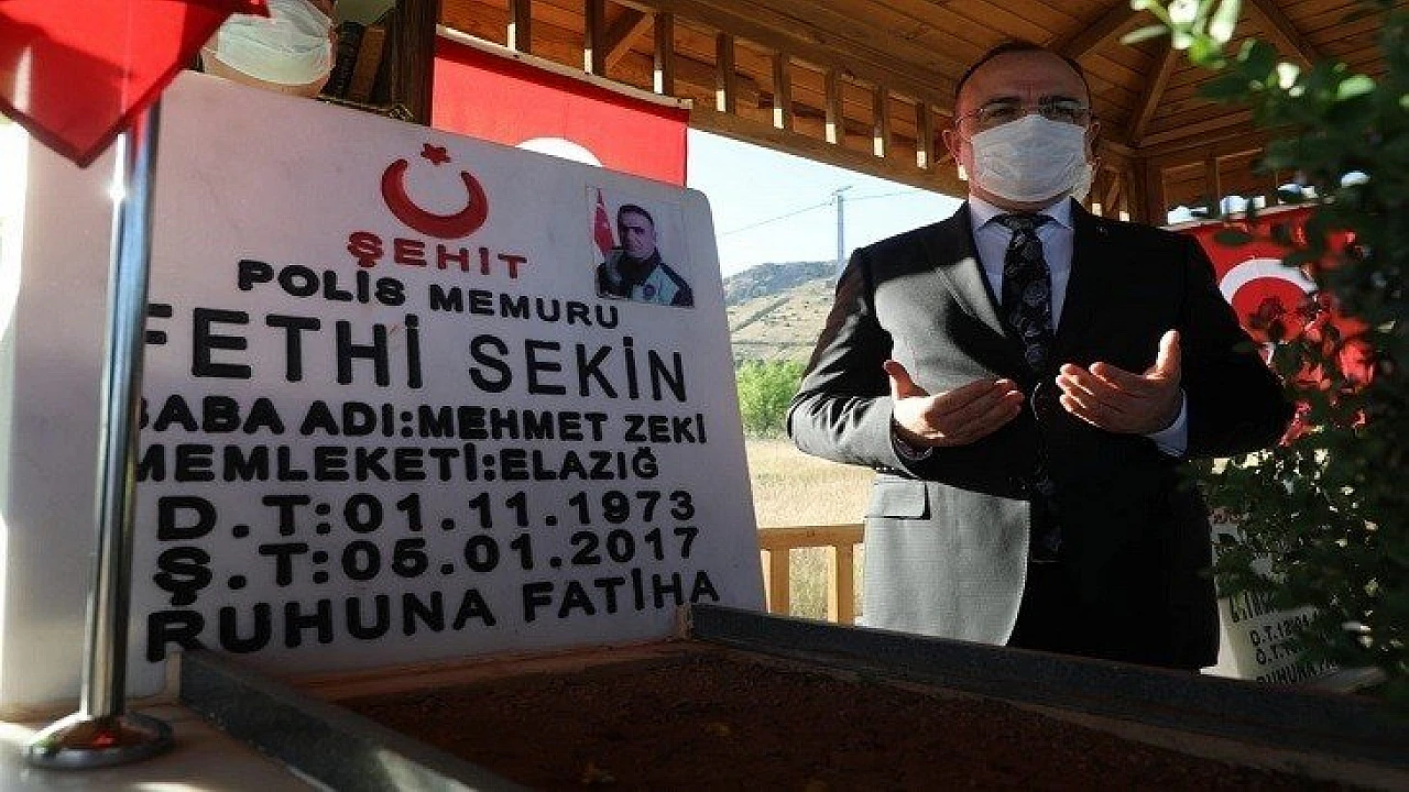 Elazığ Valisi Erkaya Yırık, İzmir'de terör örgütü PKK'nın adliyeye yönelik saldırısına kahramanca karşı koyan Elazığlı şehit polis memuru Fethi Sekin'in kabrini ziyaret etti.
