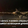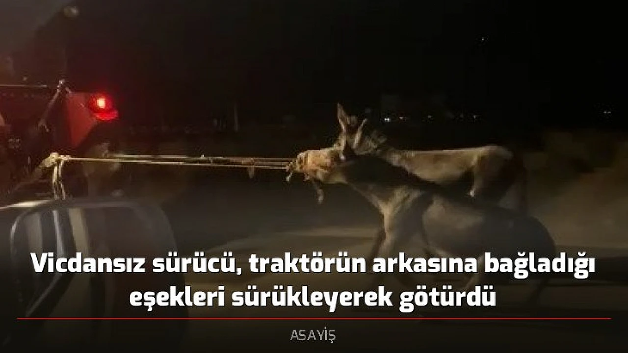 Bazı araç sürücülerinin tepki gösterdiği olayda, eşekleri traktörle bağlayarak sürükleyen vicdansız sürücü uyarılara kayıtsız kaldı.