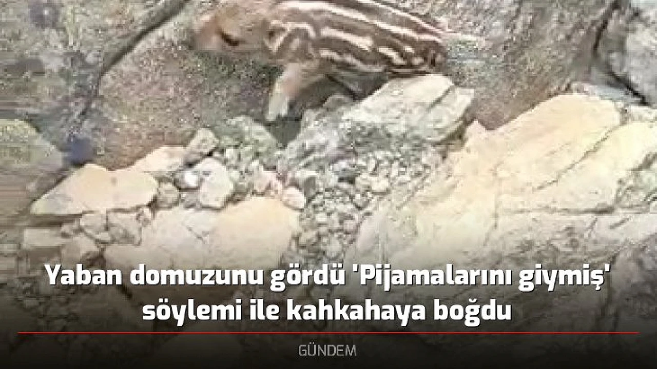 Elazığ'ın Alacakaya ilçesinde vücudunda çizgiler bulunan yaban domuzunu gören vatandaş cep telefonuna sarıldı. Kayıt sırasında hayvanın peşinden koşan ve 'Pijamalarını giymiş' ifadesini kullanan vatandaş, izleyenleri kahkahaya boğdu.
