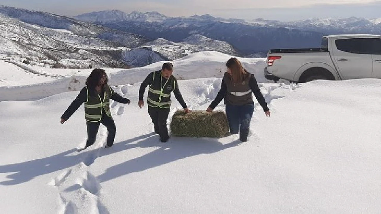 Elazığ, Tunceli ve Bingöl'de kış mevsimi nedeniyle karla kaplanan bölgelere yaban hayvanları için yem ve saman bırakıldı.